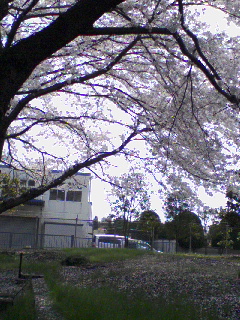ブロックのところに座ってすごい桜の写真を撮り(ホントはカメラ使用禁止w)、ぼんやり風に吹かれて買ってきたコロッケパンを齧っていると瀬名さんがやたらでかいダンボールとシートを持って来てくれた。