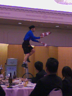 懇親会では大道芸人さんが年季の入った芸を見せてくれました。